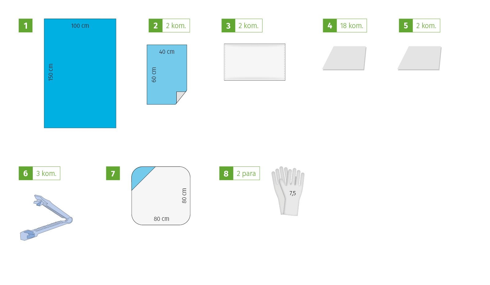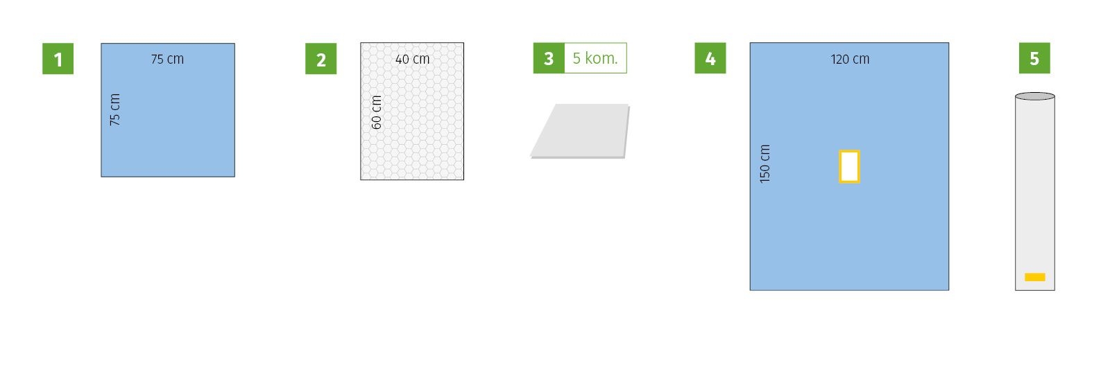 | 3 | MEDILAM viscose drape with adhesive edge (75 cm) | 75 × 90 cm | 2 |